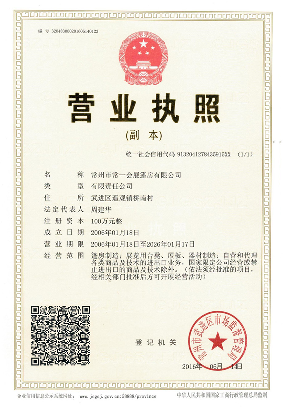 常州市常一會展篷房有限公司(簡稱常一篷房),創立于2006年,坐落于中國制造名鎮江蘇省常州市武進區遙觀鎮,公司占地面積近萬平方米,距離常州機場,高鐵常州站,常州長途汽車站僅半個小時路程,交通十分快捷。我公司地處滬寧高速(G42)橫山橋出口處,滬武高速(S38)戚墅堰、遙觀、橫林出口處,G312國道遙觀段,S232省道遙觀段,常州東環線遙觀段設置了標準化廣告指路牌,物流交通非常便利,以方便國內外客戶......